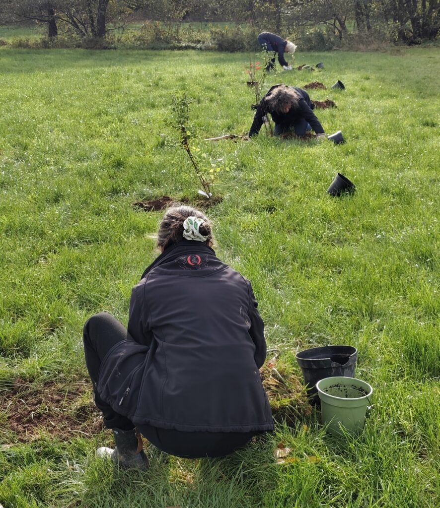 Entlang der Landstraße L3171 (zwischen Rossbach und Betzenrod) befindet sich die zweite Wiese in der Nähe von Rossbach, welche der EWOeV im November 2023 bepflanzte. Ein kleiner Bach durchschneidet die ca. 6.700 qm große Wiese und beherbergt bereits wertvolle Feuchtwiesenkräuter wie z.B. die natürliche Schmerzmittelpflanze, das Mädesüss. Ähnlich wie Am Mühlgraben, wird die Wiese zukünftig durch eine bepflanzte Wildfruchthecke umrandet und durch einen Naschgarten und eine Obst- und Nussbaumwiese ergänzt.